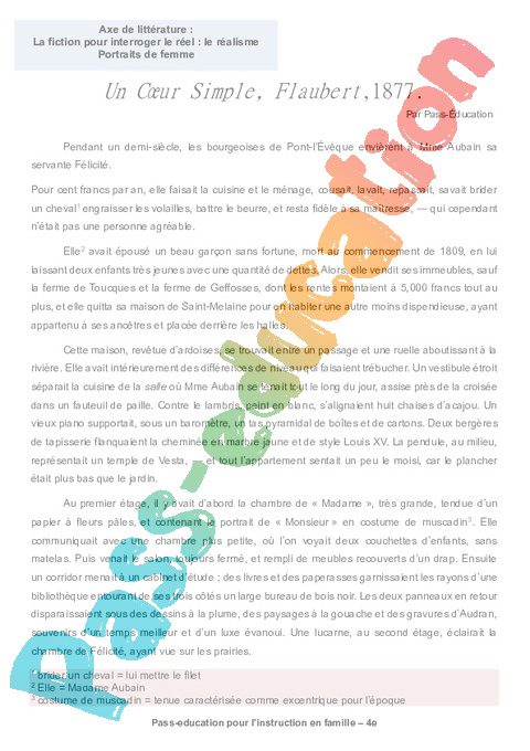 1a Un coeur simple – Flaubert semaine 15 IEF : Secondaire 2 pdf