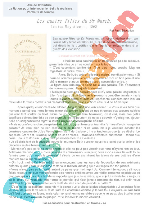2 a Les quatre filles du Dr March Louisa May Alcott semaine 15 IEF : Secondaire 2 pdf