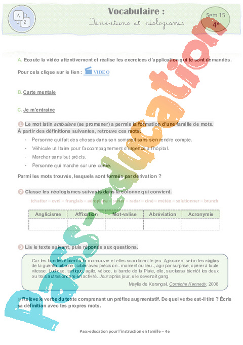 6 a Vocabulaire- Dérivations et néologismes semaine 15 IEF : Secondaire 2 pdf