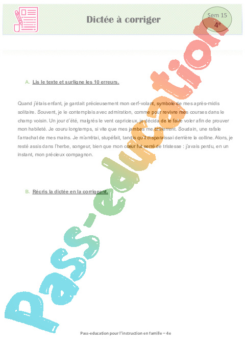 7 Dictée à corriger semaine 15 IEF : Secondaire 2 pdf