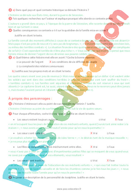 2b Questionnaire Les quatre filles du Dr March Louisa May Alcott semaine 15 IEF : Secondaire 2 pdf