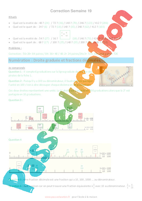Droite graduée et fractions décimales – Semaine 19 : Primaire 5 pdf à imprimer