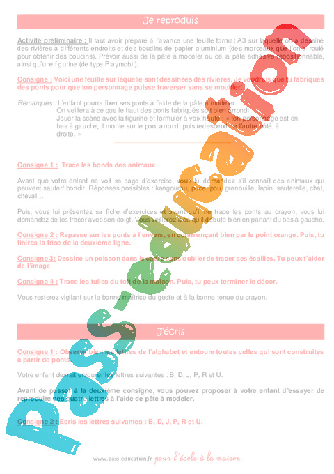 1c) Maternelle – Semaine 7 – Graphisme – Ponts – Notice Parents pdf à consulter avant de commencer (sur écran)