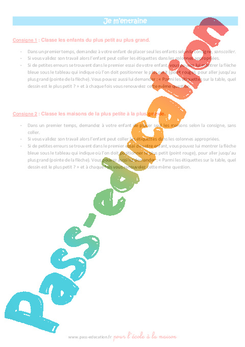 3a) Maternelle – Semaine 7 – Mathématiques – Ranger des objets selon leur taille – Notice parent pdf à consulter avant de commencer (sur écran)
