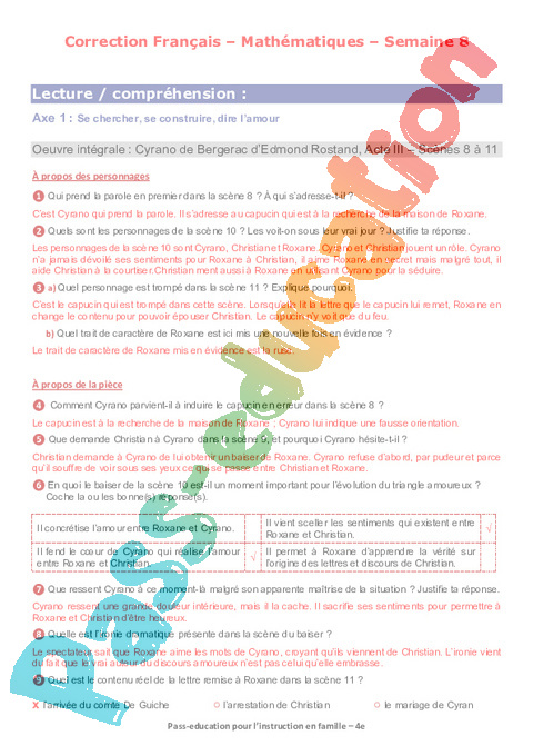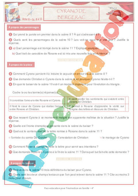 1 Questionnaire Cyrano Act III Sc 8 9 10 11 Semaine 8 IEF : Secondaire 2 pdf