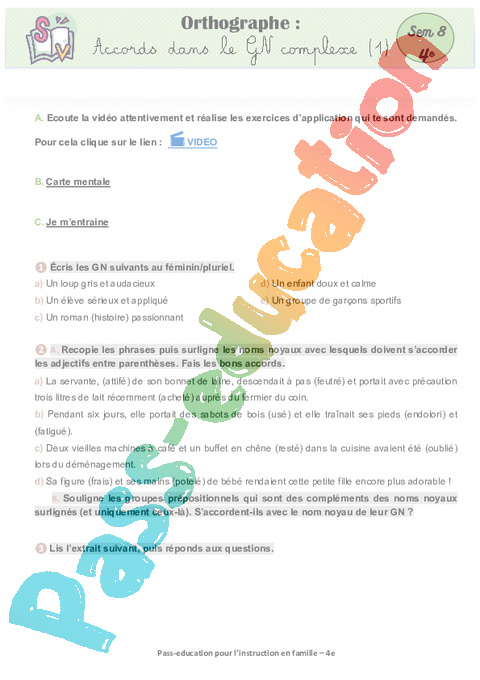 5 a Orthographe- Accords dans le GN complexe (1) Semaine 8 IEF : Secondaire 2 pdf
