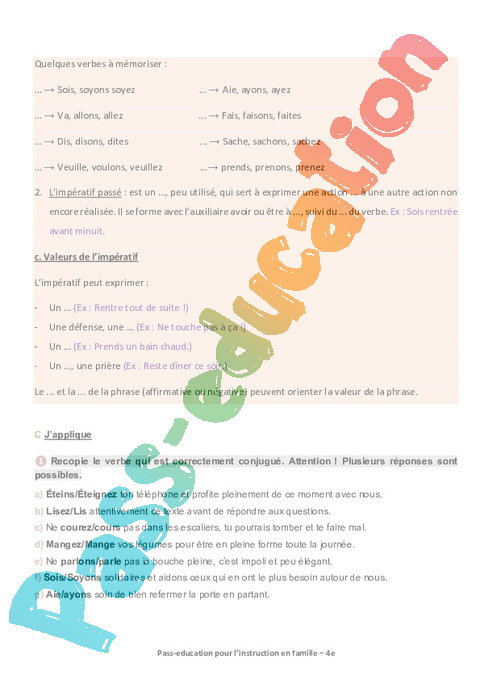 Conjugaison : L’impératif
