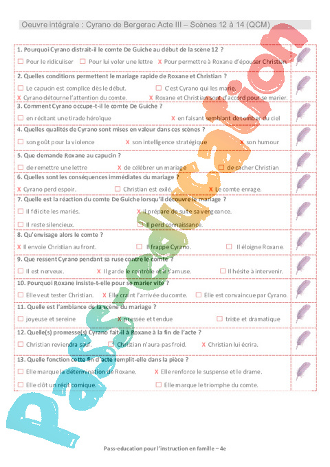 3 QCM Cyrano Acte III Sc 12 13 14 Semaine 8 IEF : Secondaire 2 pdf