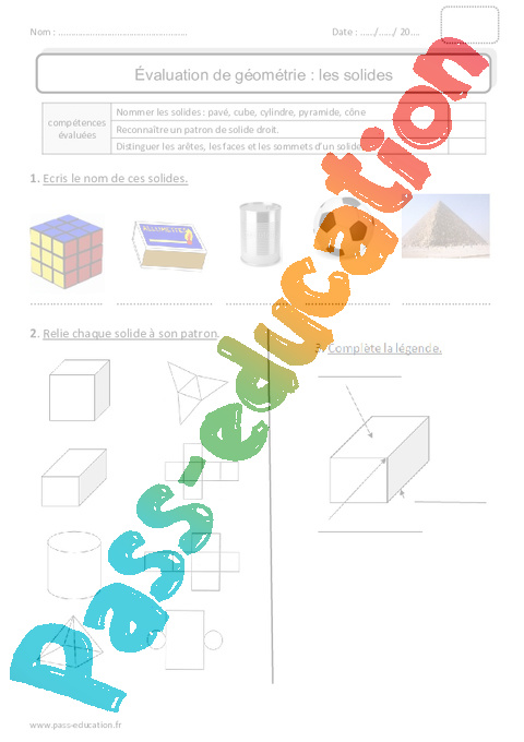Solides : Primaire 2 – Bilan – pavé, cube, cylindre, pyramide, cône rtf