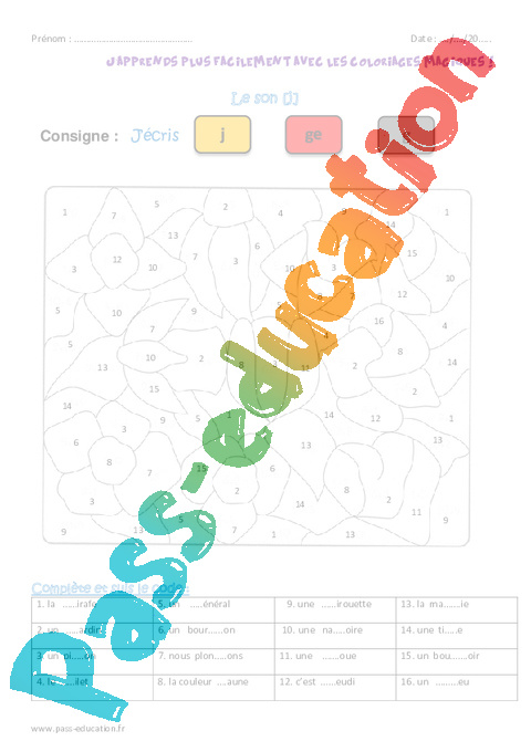 Coloriage magique à imprimer pour la Primaire 2 – Son j