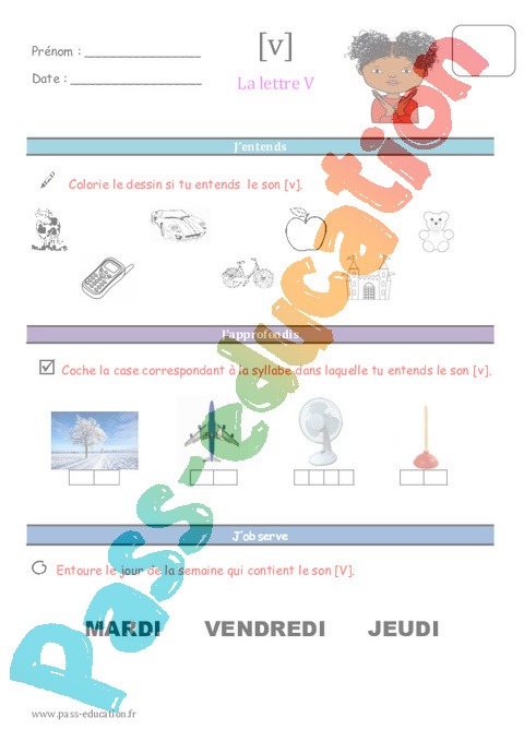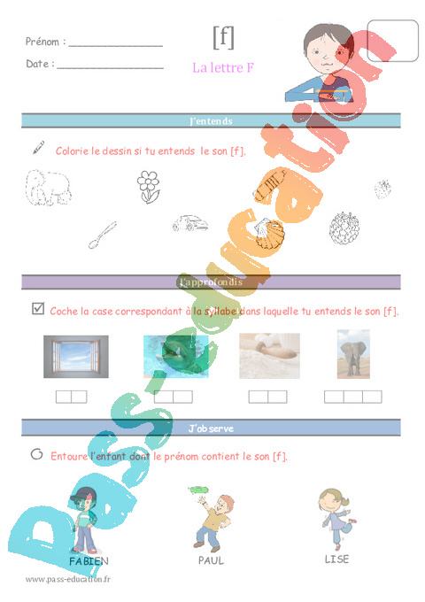 Exercices pour la maternelle – Fiches à imprimer sur le son et la lettre: