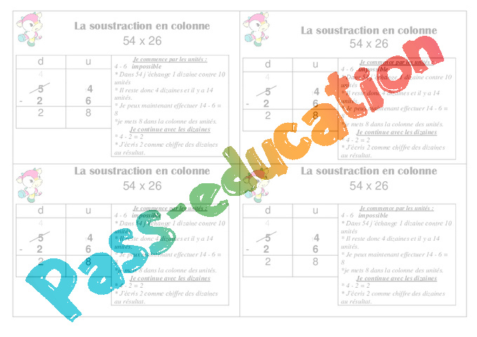 Soustraction en colonne – Leçon : Primaire 2 – Calcul