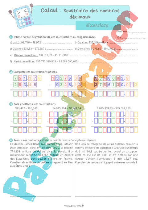 Exercices : Primaire 5 Soustraire des nombres décimaux rtf
