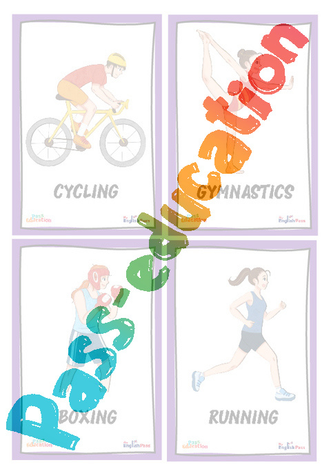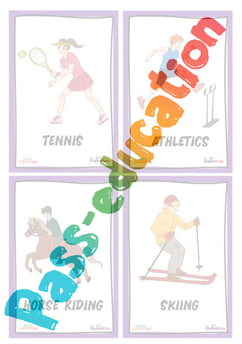 Sports – Vocabulaire – Cours, Leçon/Flashcard – Apprends l’anglais avec Kelly and James : Maternelle 2, [Primaire] – PDF à imprimer