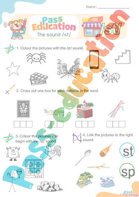 1.Circle all the /st/ sounds.