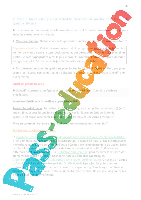 Fiche de préparation : Primaire 5 – Symétrie axiale pdf