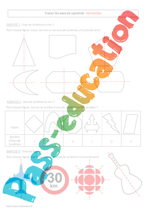 Correction – Symétrie axiale – Tracer un axe : Primaire 6 – Evaluation pdf