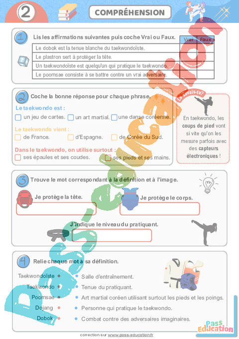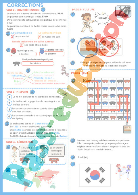 Correction Taekwondo – Cahier de vacances : Primaire 2, 3 pdf