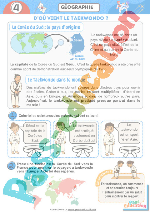 Le taekwondo est né dans un pays d’Asie : la Corée du Sud.