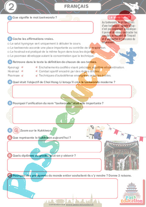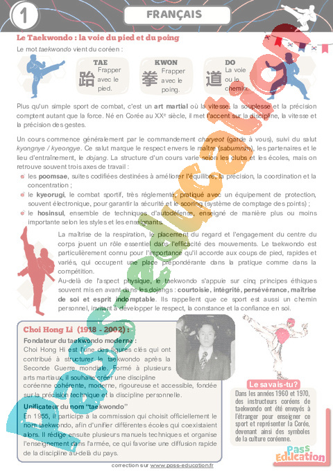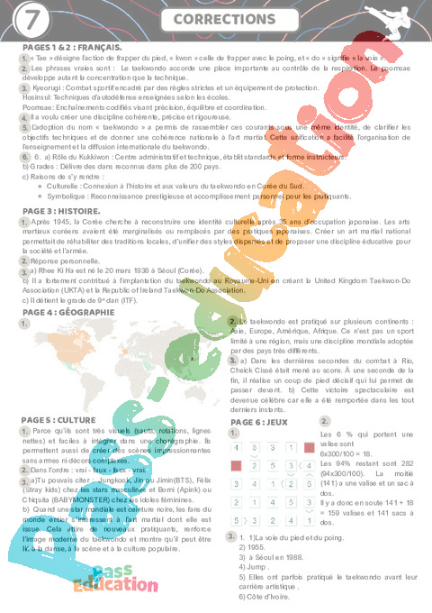 Correction Taekwondo – Cahier de vacances : Primaire 6 Secondaire 1 pdf