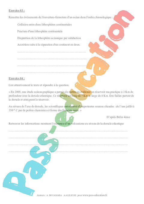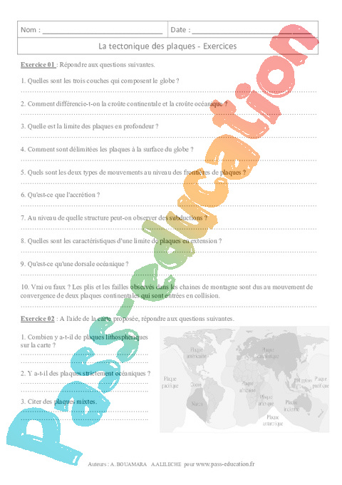 Fiche d’exercices pour une séquence complète sur la tectonique des plaques en Secondaire 2