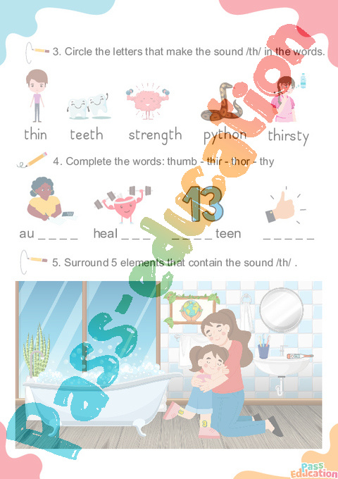 3. Circle the letters that make the sound /th/ in the words.