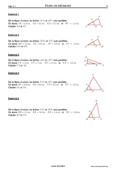 : Secondaire 2 – Exercices à imprimer – Théorème de Thalès – Géométrie Exercice 1 : Dans un triangle. Hypothèses : (AB) // (CD) ; AB = 7 cm ; CD = 3cm ; EA =3.9cm ; DB =2.15 cm Exercice 3 : Calcul de longueur. Dans la figure ci-contre, les droites (MN) et (OP) sont parallèles. a. Entourer les égalités exactes : b. ON donne. Calculer MN. Exercice 3 : Dans un parallélogramme. Hypothèses : ABCD est un parallélogramme….