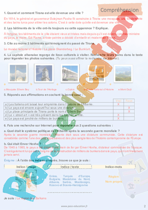 Correction Tirana – Escale 8 – Petit tour en Europe : Secondaire 1, 2 pdf