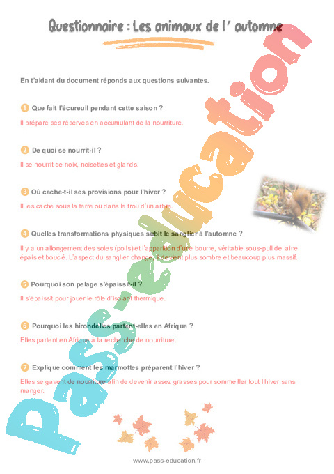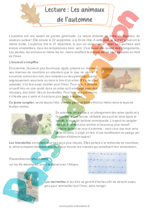 Lecture : Les animaux de l’automne