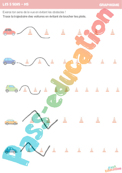 Trajectoire des voitures – Les 5 sens – Graphisme : Maternelle 1