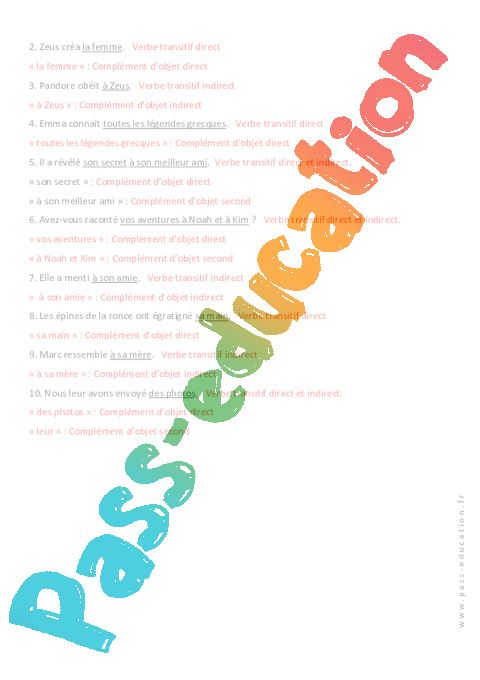 Correction – Transitifs directs et intransitifs indirects : Secondaire 2 – Exercices sur les verbes pdf