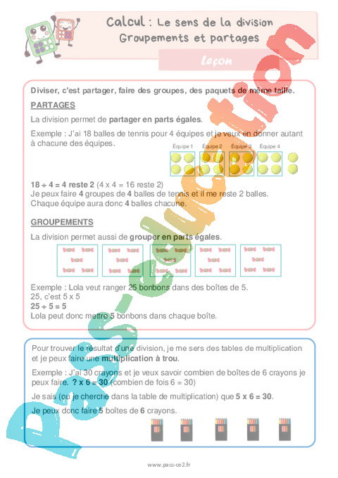 Leçon de calcul pour la Primaire 3 sur le travail sur le sens de la division.