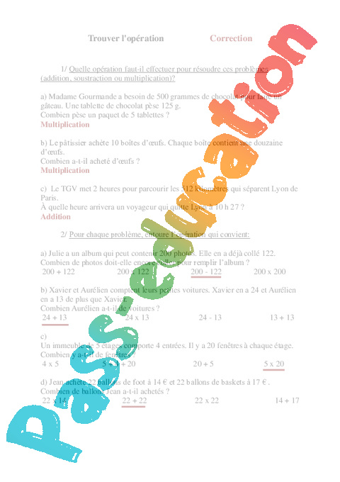 2/ Pour chaque problème, entoure l’opération qui convient: