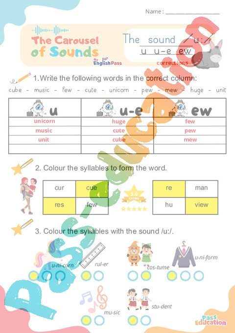 Correction u u u-e ew – Phonologie anglaise – Carousel of Sounds pdf