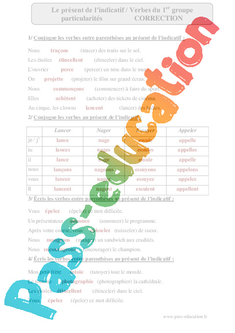 Correction – Présent de l’indicatif – Verbes du 1er groupe ,particularités : Primaire 5 – Exercices corrigés – 1