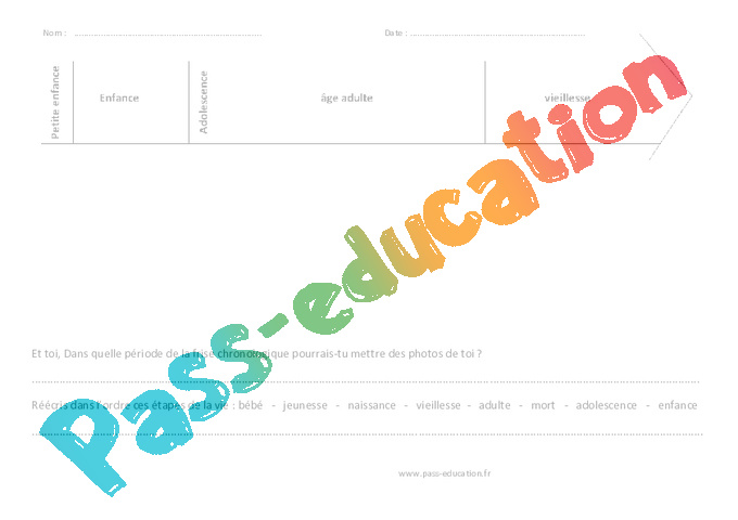 Colorie au crayon de couleur chaque étape de la vie. Combien y en a-t-il ?