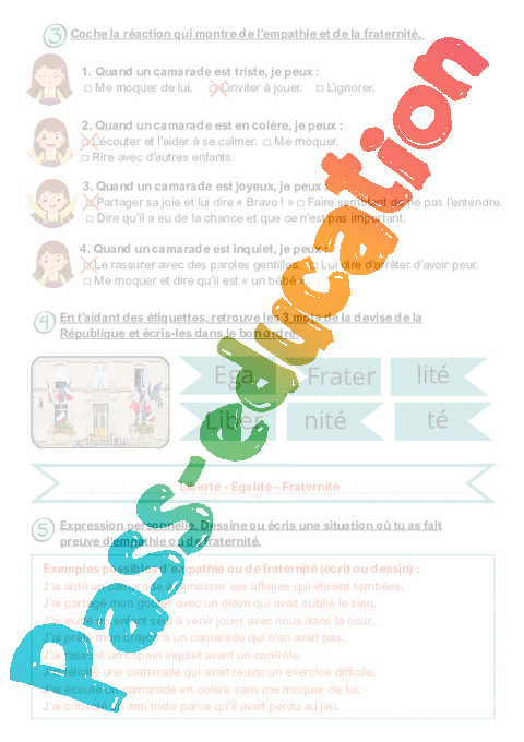 6. Correction Fiche évaluation : Primaire 2 Vivre ensemble avec empathie et fraternité pdf