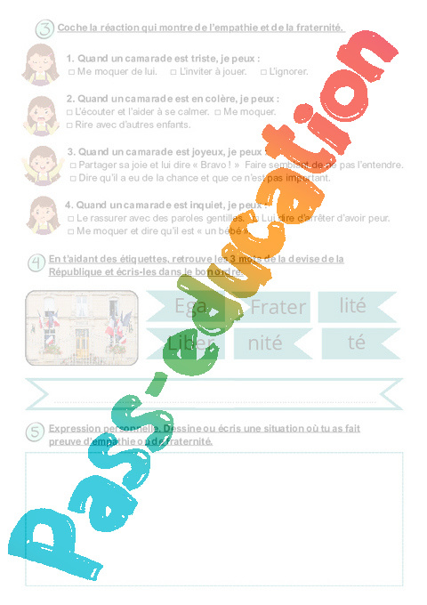 Evaluation sur Vivre ensemble avec empathie et fraternité : EMC Education morale et civique.