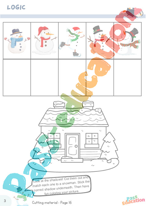 Look at the shadows! Cut them out andmatch each one to a snowman. Stick thecorrect shadow underneath. Then havefun coloring your picture.