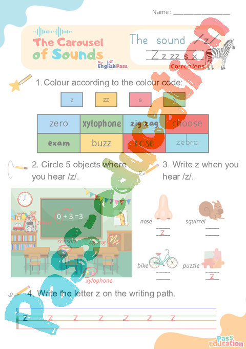 Carousel of Sounds : Maternelle 2 Primaire 1, 2, 3, 4, 5 – Vidéo interactive + Fiche sur le son : /z/ z zz s x.