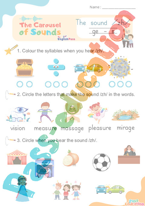 1. Colour the syllables when you hear /zh/.